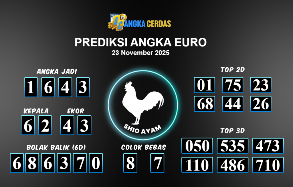 Prediksi Togel EURO untuk hari ini Minggu 23 November 2025, adalah salah