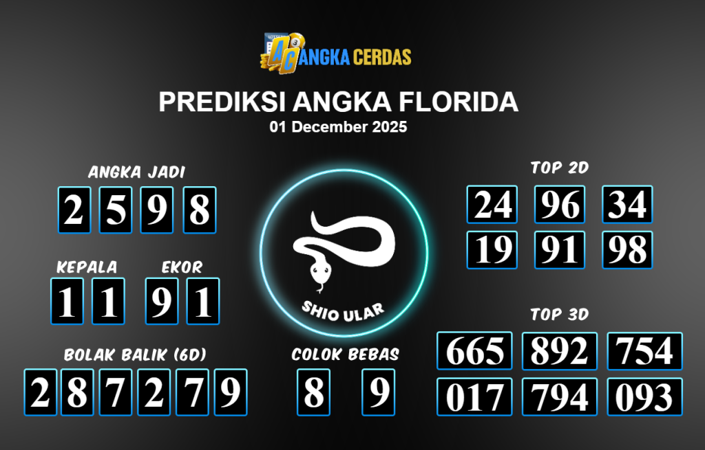 Prediksi Togel FLORIDA untuk hari ini Senin 1 Desember November 2025, adalah salah