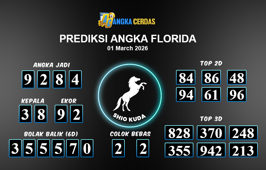 Prediksi Togel FLORIDA untuk hari ini Minggu, 01 Maret 2026, adalah salah