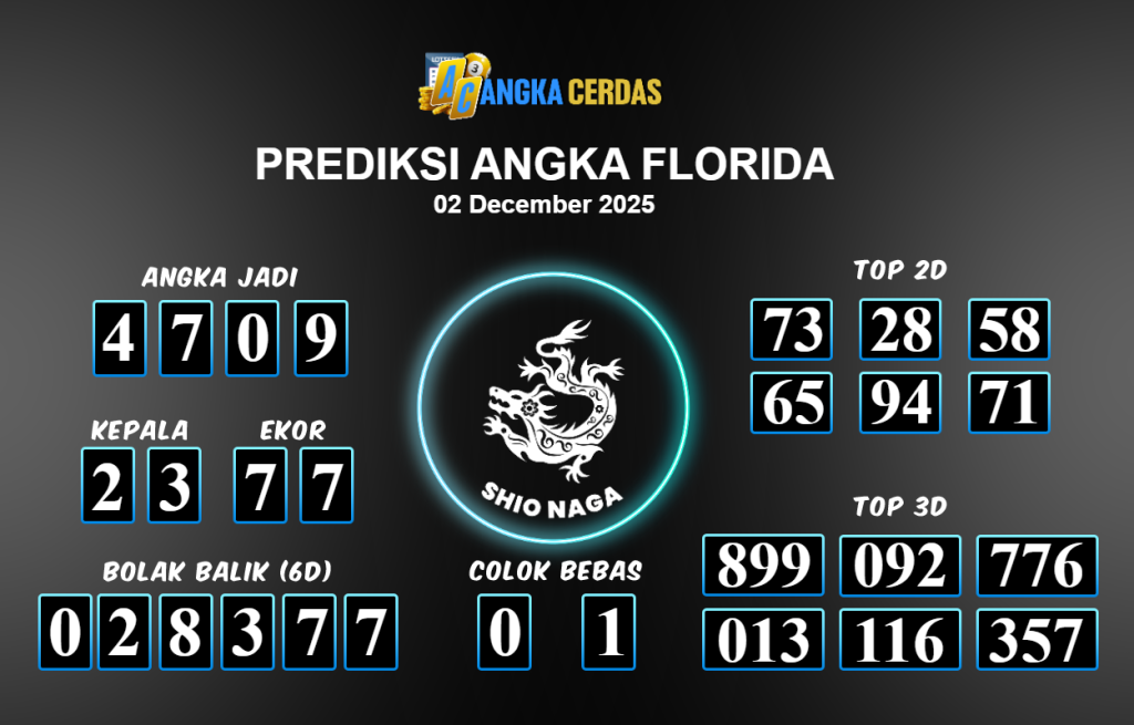 Prediksi Togel FLORIDA untuk hari ini Selasa 02 Desember November 2025, adalah salah