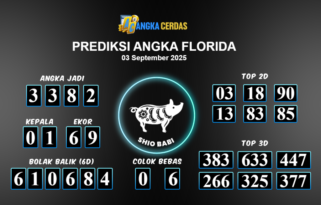 Prediksi Togel FLORIDA untuk hari ini Rabu 03 September 2025, adalah salah