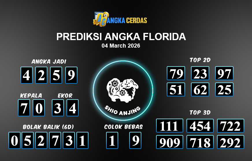 Prediksi Togel FLORIDA untuk hari ini Rabu, 04 Maret 2026, adalah salah