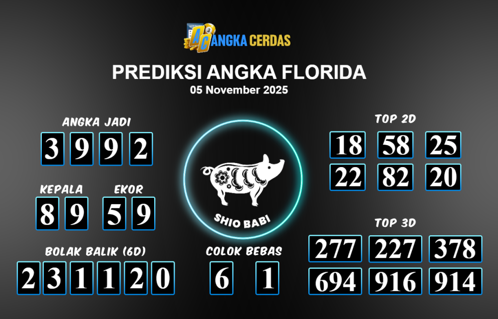 Prediksi Togel FLORIDA untuk hari ini Rabu 05 November 2025, adalah salah