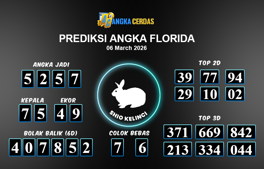 Prediksi Togel FLORIDA untuk hari ini Jumat, 06 Maret 2026, adalah salah