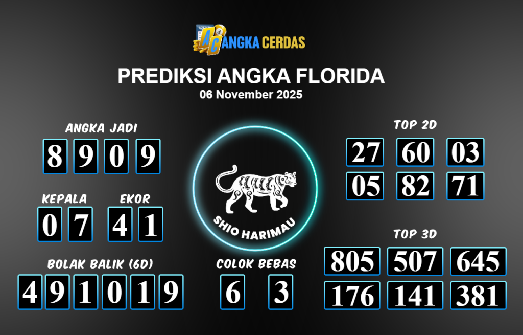 Prediksi Togel FLORIDA untuk hari ini Kamis 06 November 2025, adalah salah