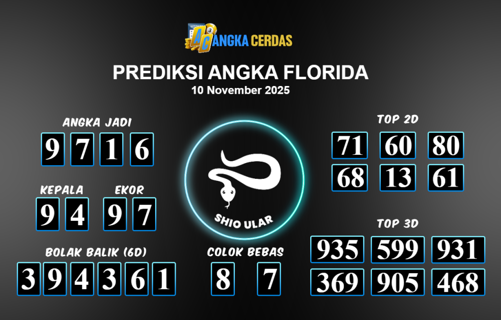 Prediksi Togel FLORIDA untuk hari ini Senin 10 November 2025, adalah salah