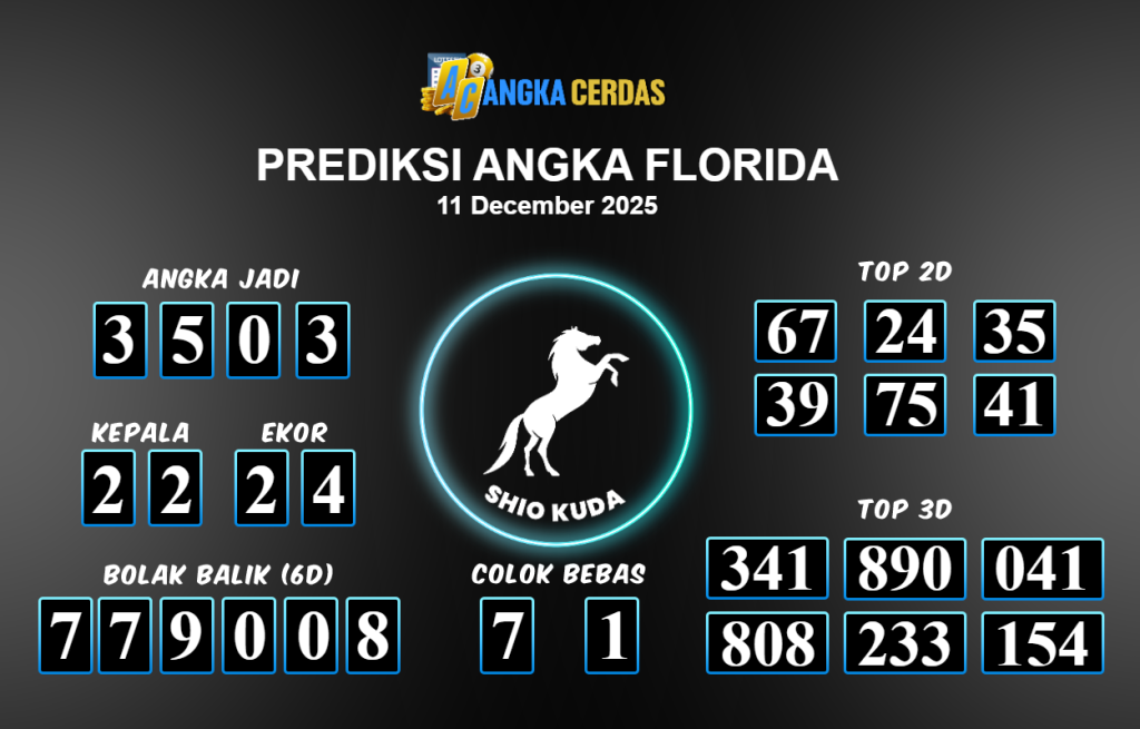 Prediksi Togel FLORIDA untuk hari ini Kamis 11 Desember November 2025, adalah salah