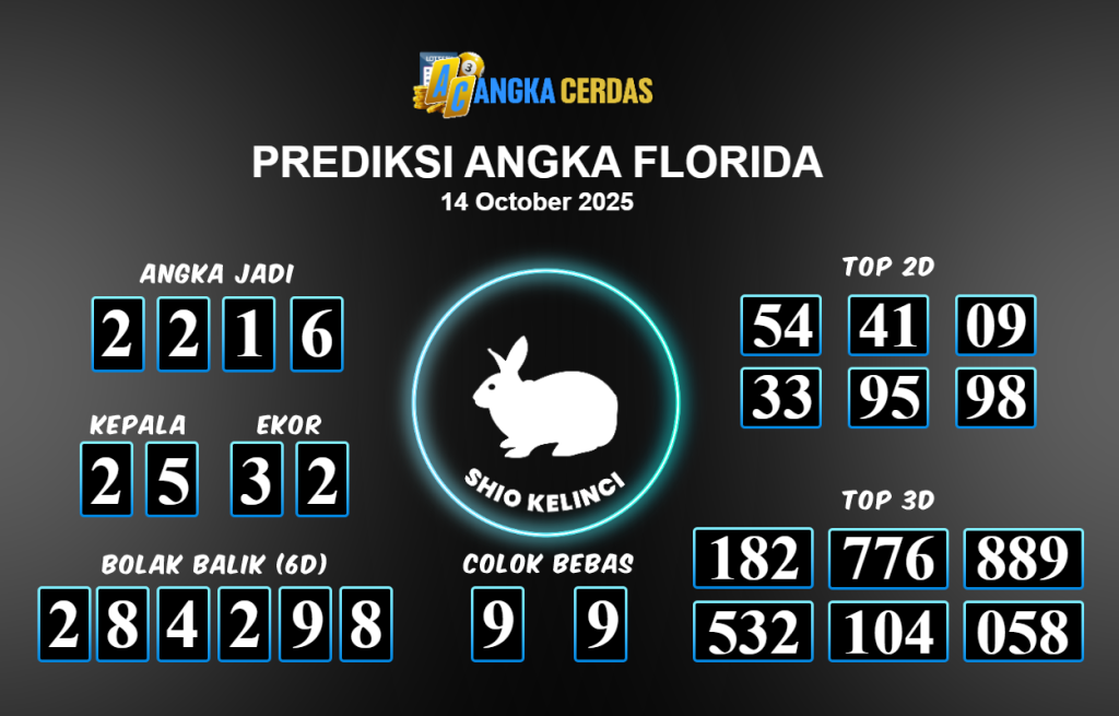 Prediksi Togel FLORIDA untuk hari ini Selasa 14 Oktober 2025, adalah salah