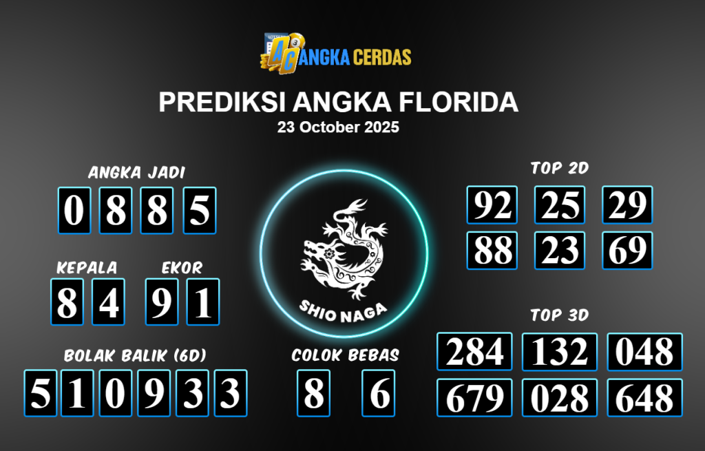 Prediksi Togel FLORIDA untuk hari ini Kamis 23 Oktober 2025, adalah salah