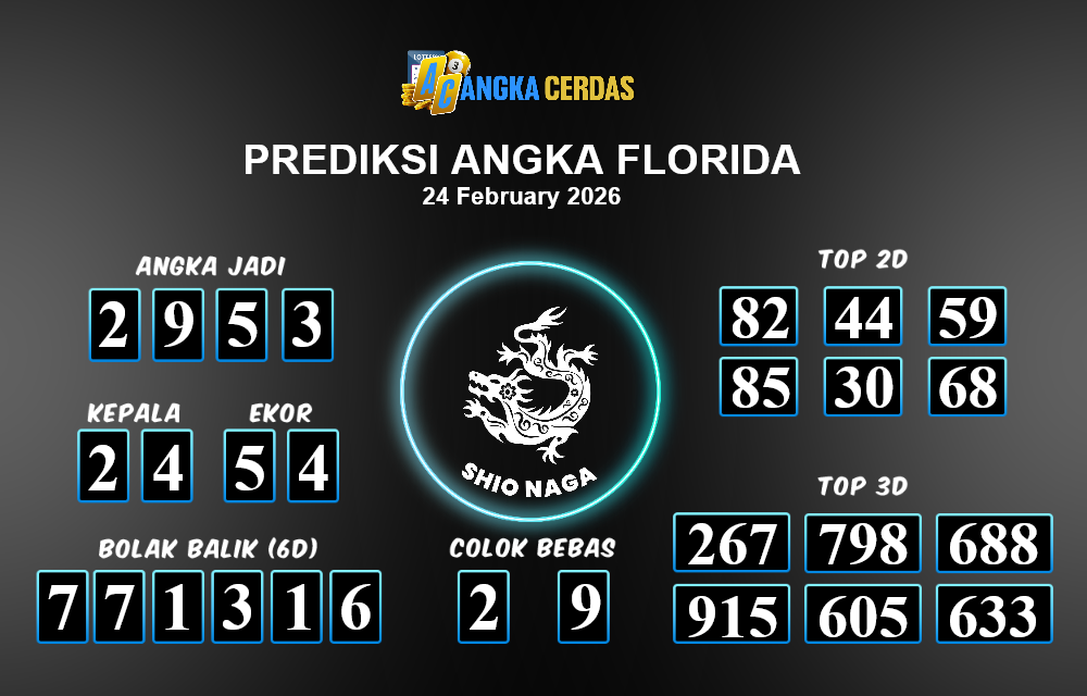 Prediksi Togel FLORIDA untuk hari ini Selasa, 24 Februari 2026, adalah salah