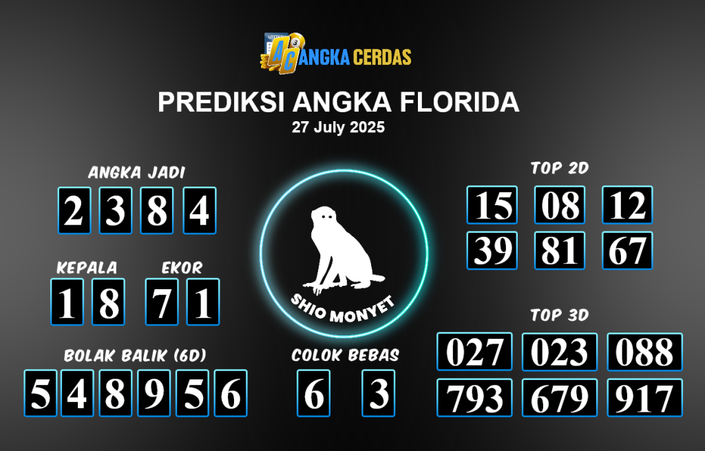 Prediksi Togel FLORIDA untuk hari ini Minggu, 27 Juli 2025, adalah salah
