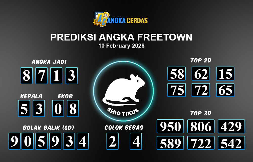 Prediksi Togel Freetown untuk hari ini Selasa, 10 Februari 2026, adalah salah
