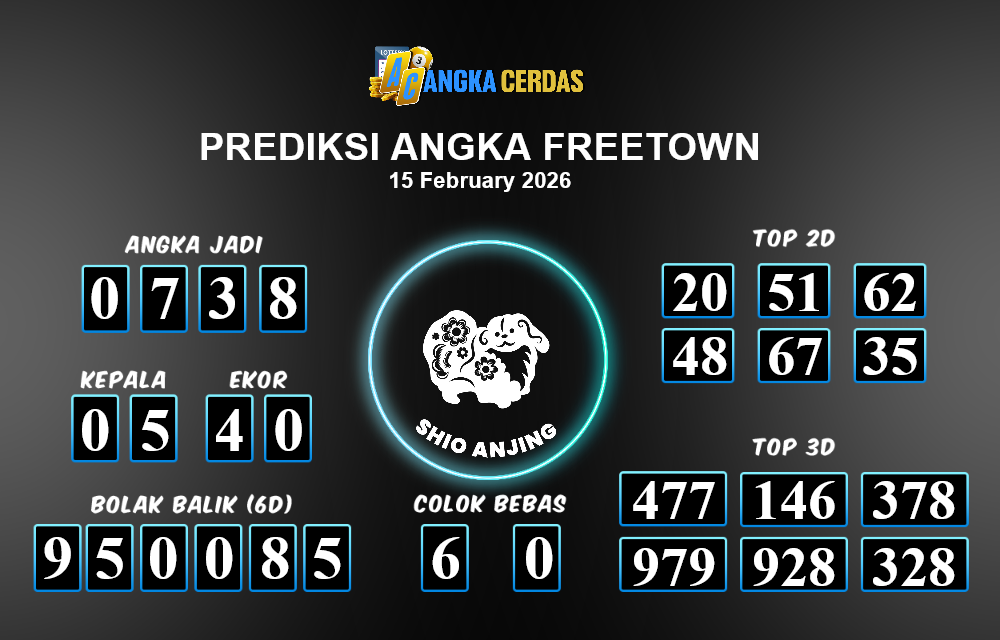 Prediksi Togel FREETOWN untuk hari ini Minggu, 15 Februari 2026, adalah salah