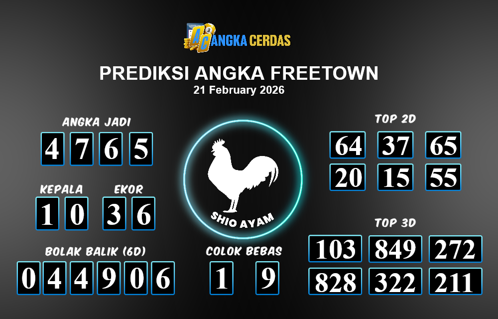 Prediksi Togel FREETOWN untuk hari ini Sabtu,, 21 Februari 2026, adalah salah