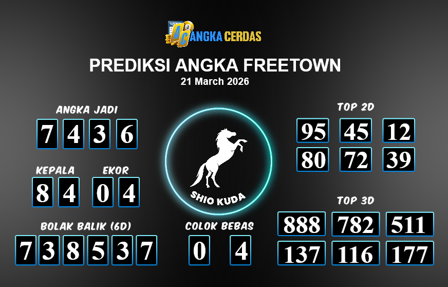 Prediksi Togel FREETOWN untuk hari ini Sabtu, 21 Maret 2026, adalah salah