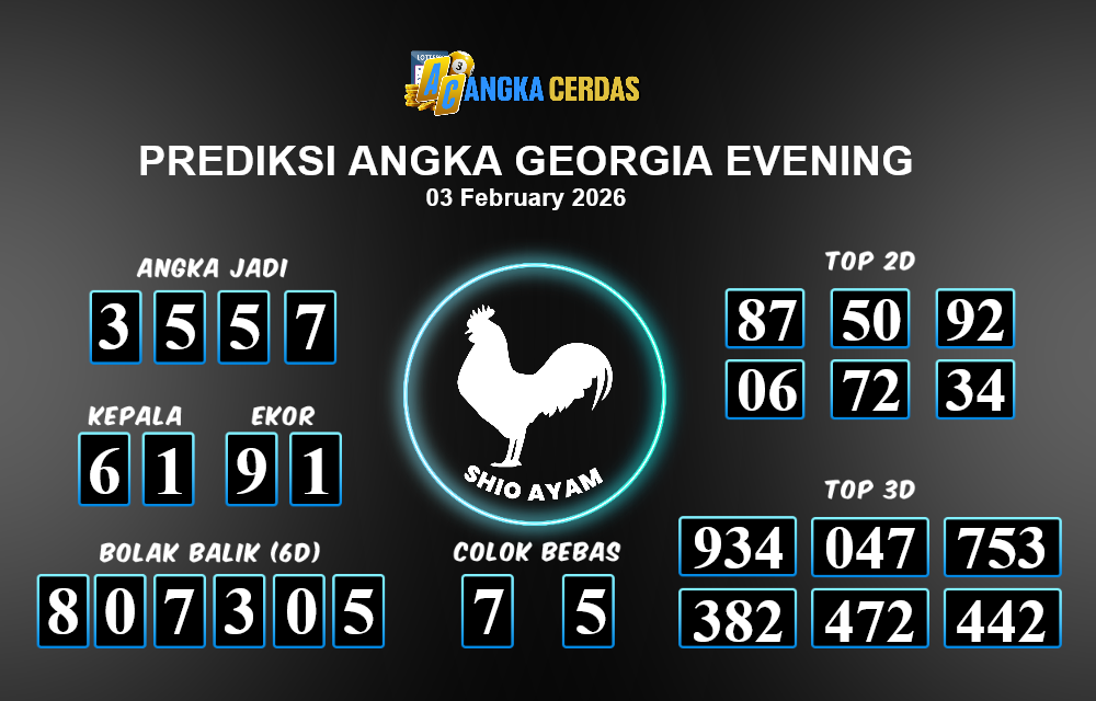 Angka Cerdas : Bocoran Prediksi Togel GEORGIA EVENING Tanggal 03 FEBRUARI 2026