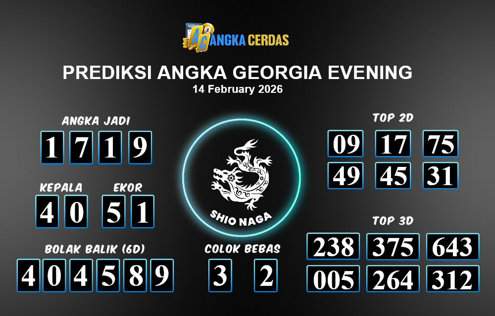 Prediksi Togel GEORGIA EVENING untuk hari ini Sabtu, 14 Februari 2026, adalah salah