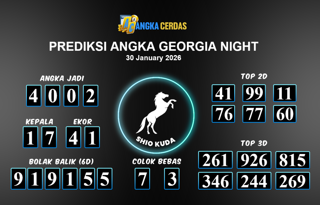 Prediksi Togel GEORGIA NIGHT untuk hari ini Jumat 30 Januari 2026,adalah salah