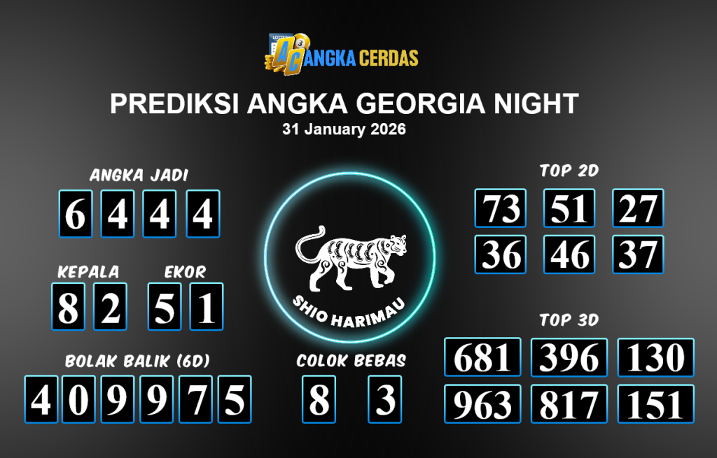 Angka Cerdas : Bocoran Prediksi Togel GEORGIA NIGHT Tanggal 31 JANUARI 2026