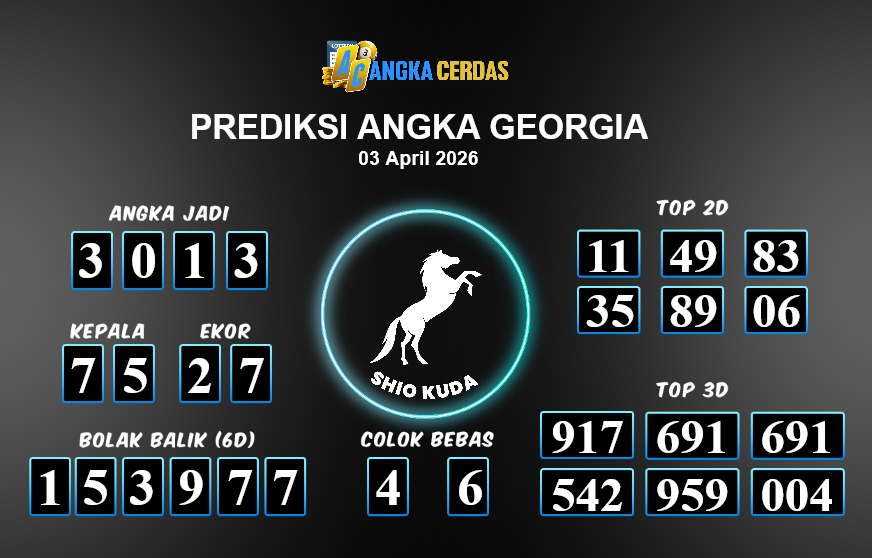 Prediksi Togel GEORGIA untuk hari ini Jumat, 03 April 2026, adalah salah
