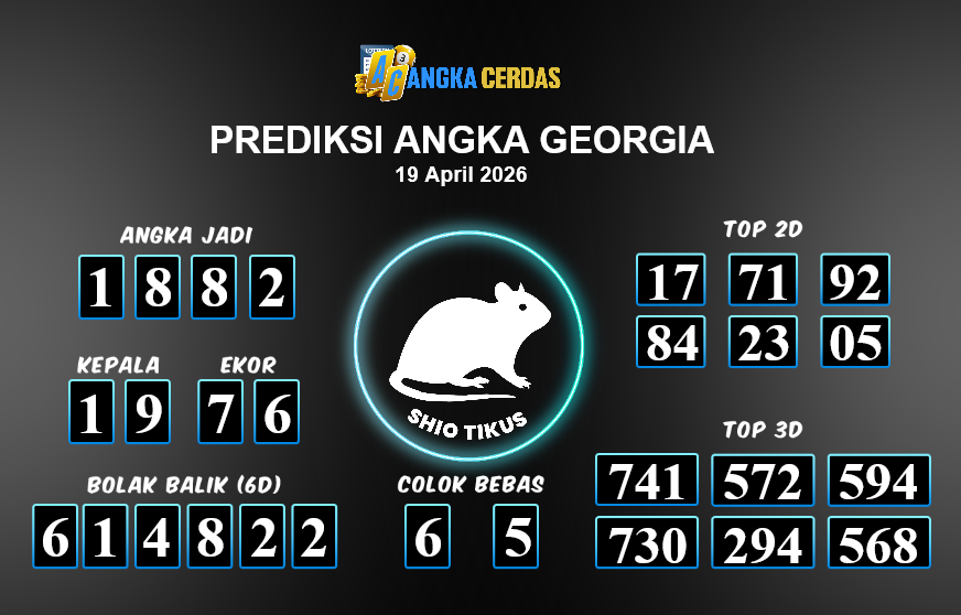 Prediksi Togel GEORGIA untuk hari ini Minggu, 19 April 2026, adalah salahsatu jenis togel yang memiliki banyak penggemar.Ini terutama ditujukanbagi Anda yang menyukai 4d/3d/2d. Prediksi Angka Cerdas yang kamisediakan,bisa