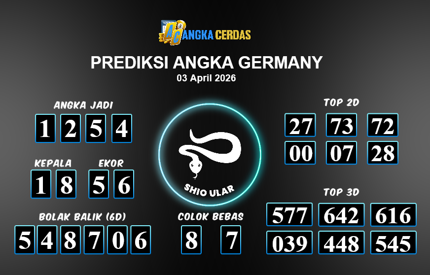 Prediksi Togel GERMANY untuk hari ini Jumat, 03 April 2026, adalah salah