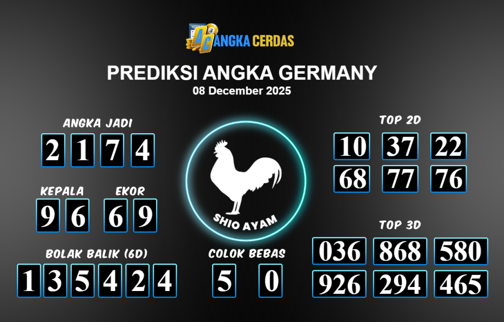 Prediksi Togel GERMANY untuk hari ini Senin 08 Desember November 2025, adalah salah