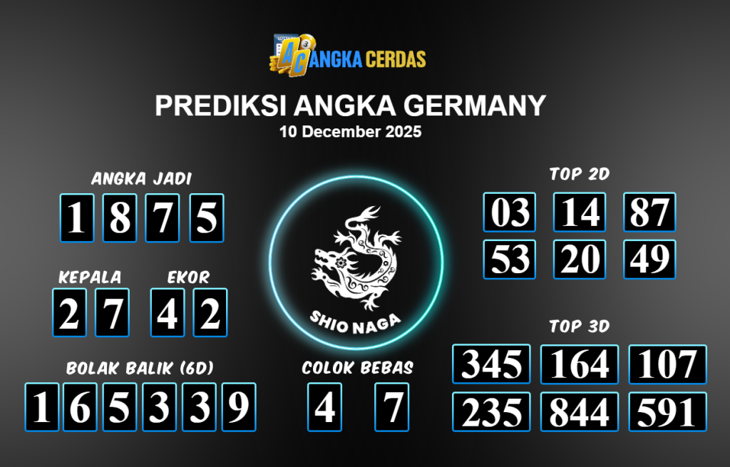 Prediksi Togel GERMANY untuk hari ini Rabu 10 Desember November 2025, adalah salah