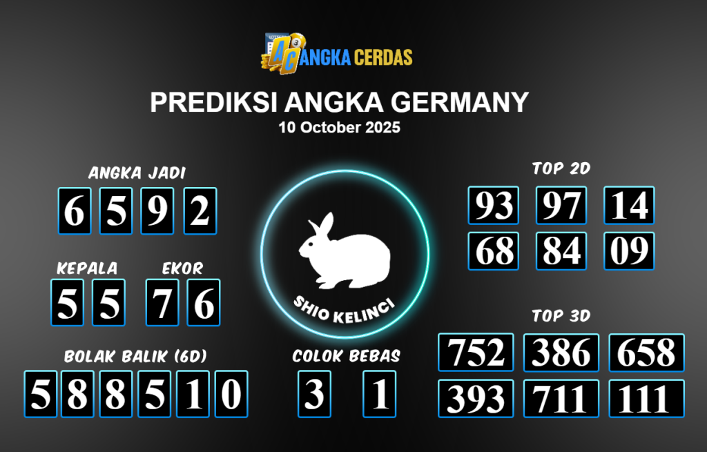 Prediksi Togel GERMANY untuk hari ini Jumat 10 Oktober 2025, adalah salah