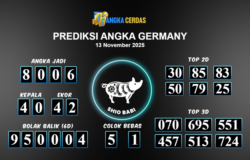 Prediksi Togel GERMANY untuk hari ini Kamis 13 November 2025, adalah salah