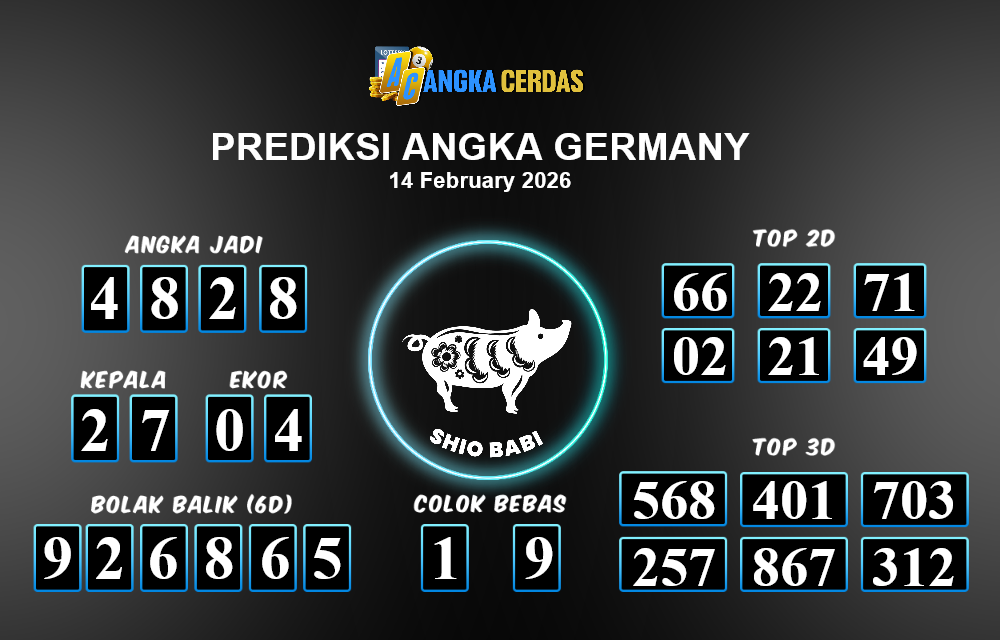 Prediksi Togel GERMANY untuk hari ini Sabtu, 14 Februari 2026, adalah salah