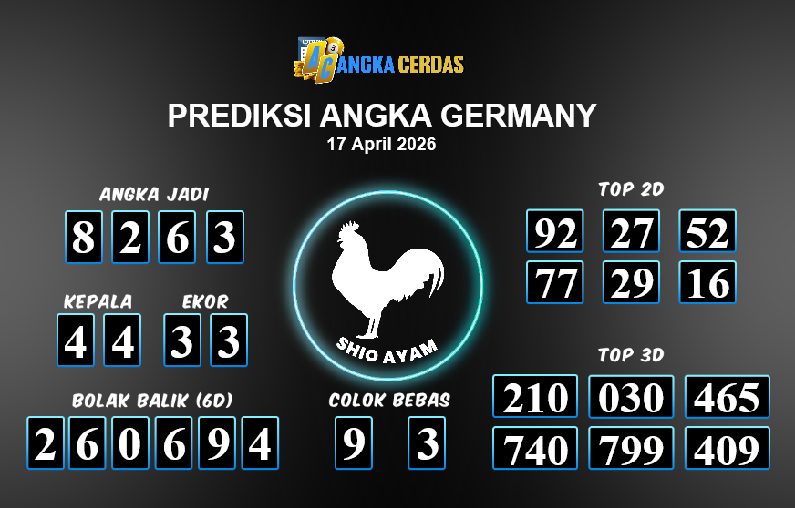 Prediksi Togel GERMANY untuk hari ini Jumat, 17 April 2026, adalah salah