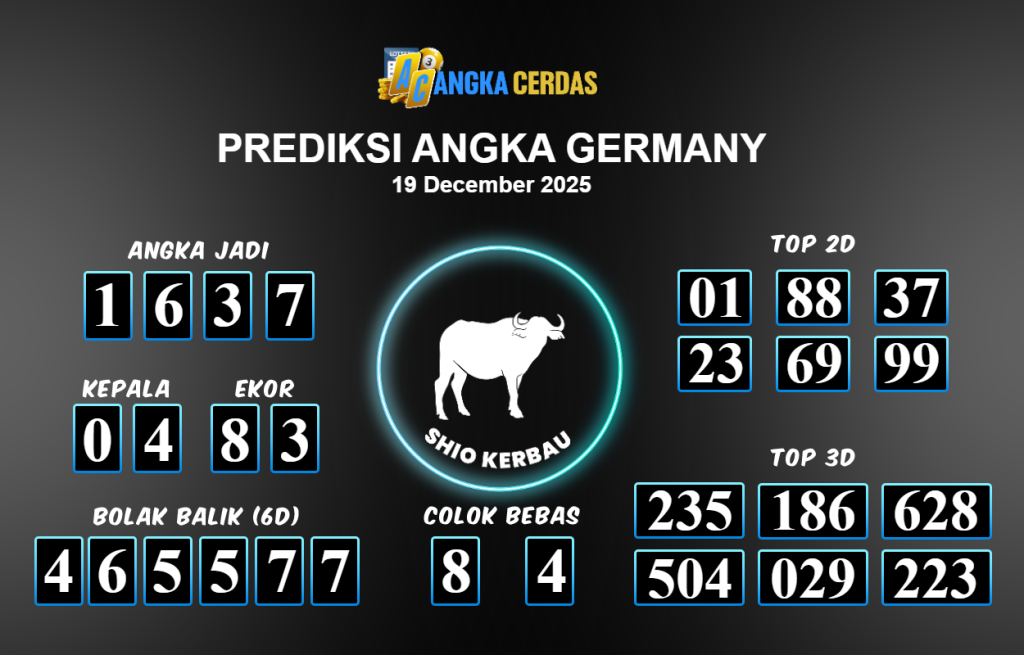 Prediksi Togel GERMANY untuk hari ini Jumat 19 Desember November 2025, adalah salah