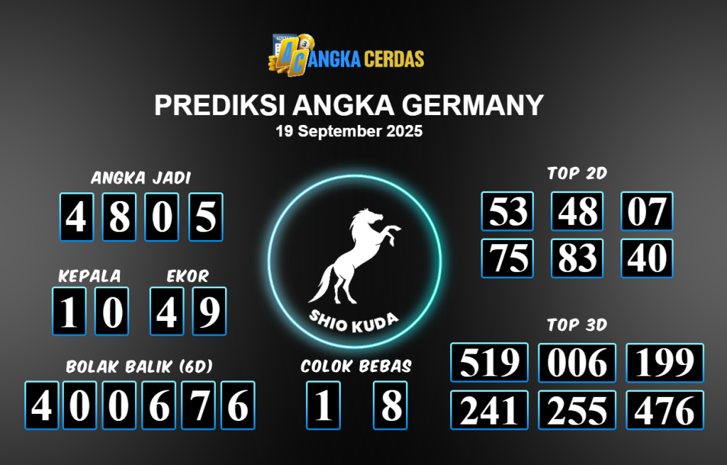 Prediksi Togel GERMANY untuk hari ini Jumat 19 September 2025, adalah salah
