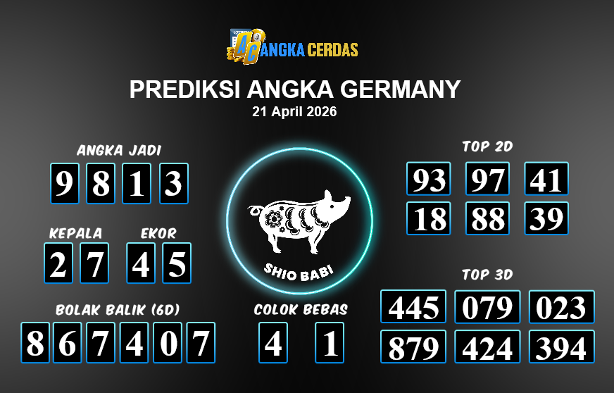 Prediksi Togel GERMANY untuk hari ini Selasa, 21 April 2026, adalah salahsatu jenis togel yang memiliki banyak penggemar.Ini terutama ditujukanbagi Anda yang menyukai 4d/3d/2d. Prediksi Angka Cerdas yang kamisediakan,bisa