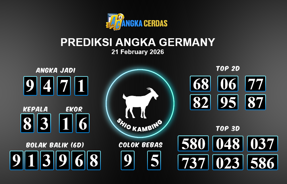 Prediksi Togel GERMANY untuk hari ini Sabtu,, 21 Februari 2026, adalah salah