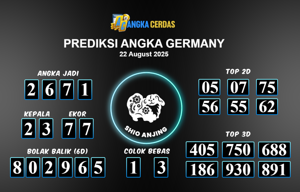 Prediksi Togel GERMANY untuk hari ini Jumat 22 Agustus 2025, adalah salah