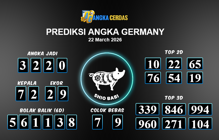 Prediksi Togel GERMANY untuk hari ini Minggu, 22 Maret 2026, adalah salah