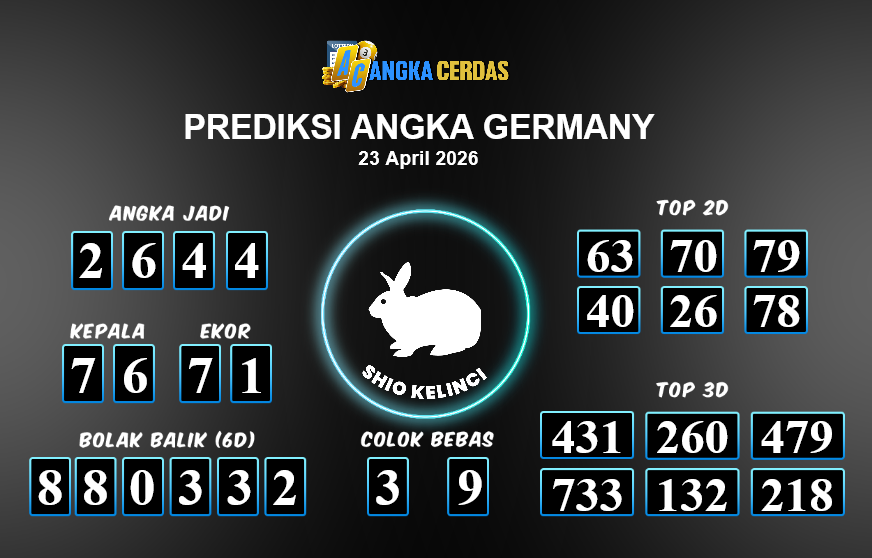 Prediksi Togel GERMANY untuk hari ini Kamis, 23 April 2026, adalah salahsatu jenis togel yang memiliki banyak penggemar.Ini terutama ditujukanbagi Anda yang menyukai 4d/3d/2d. Prediksi Angka Cerdas yang kamisediakan,bisa