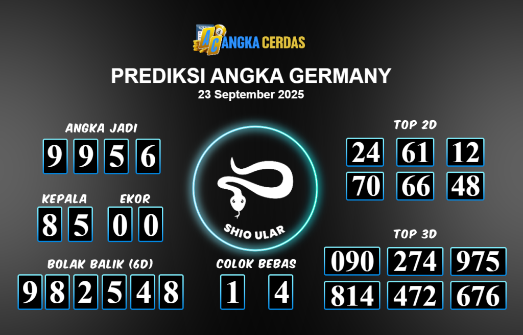 Prediksi Togel GERMANY untuk hari ini Selasa 23 September 2025, adalah salah