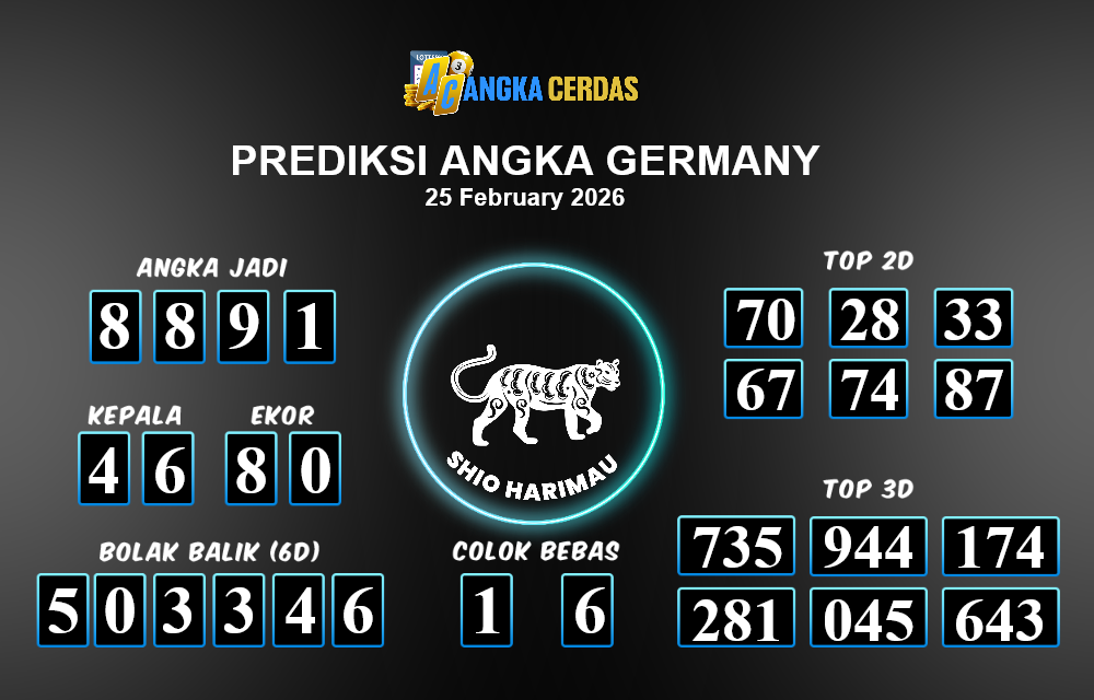 Prediksi Togel GERMANY untuk hari ini Rabu, 25 Februari 2026, adalah salah