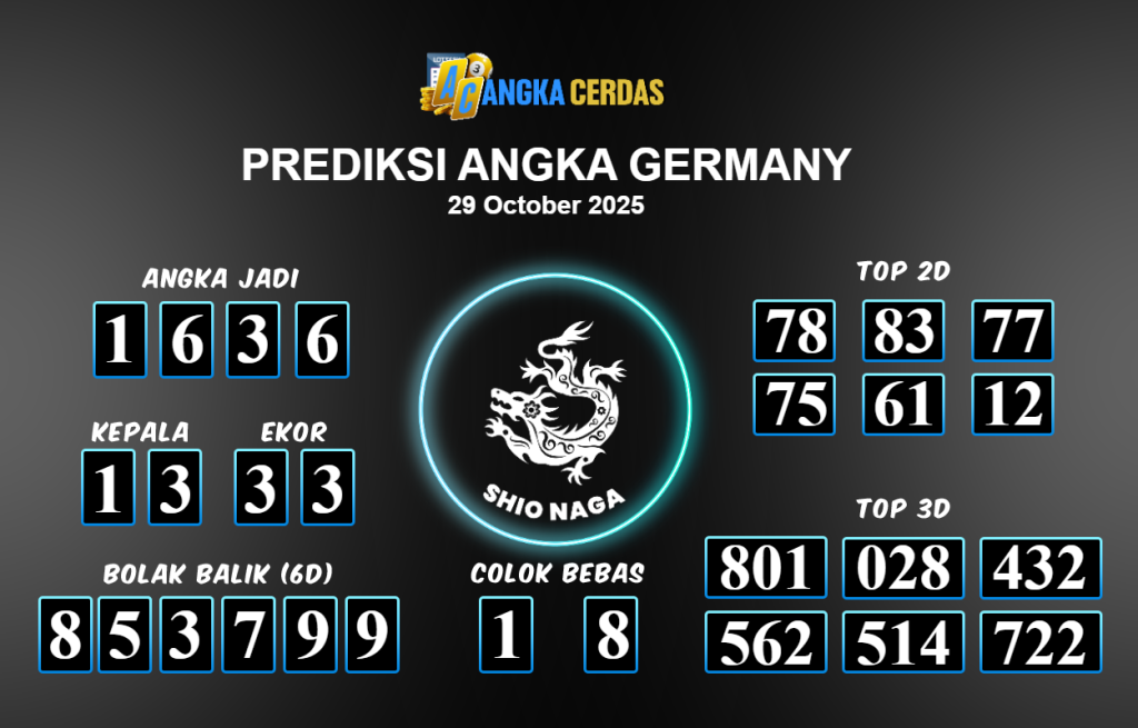 Prediksi Togel GERMANY untuk hari ini Rabu 29 Oktober 2025, adalah salah
