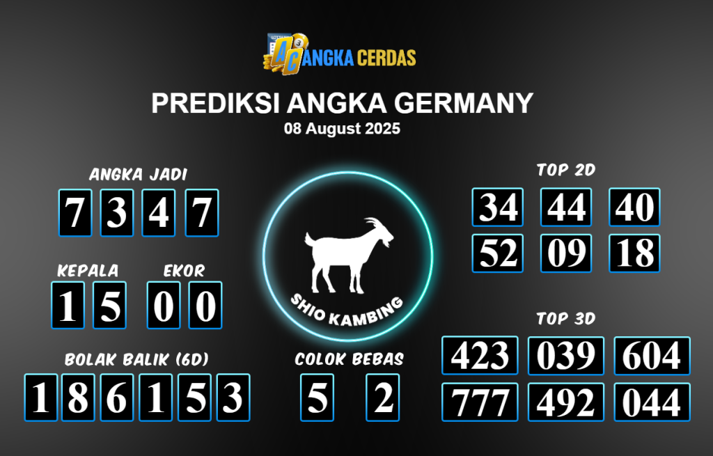 Prediksi Togel GERMANY untuk hari ini Jum’at, 8 Agustus 2025, adalah salah