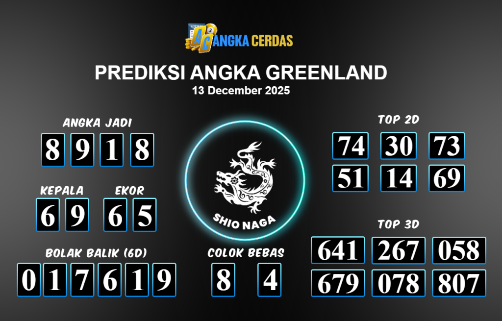 Prediksi Togel GREENLAND untuk hari ini Sabtu 13 Desember November 2025, adalah salah