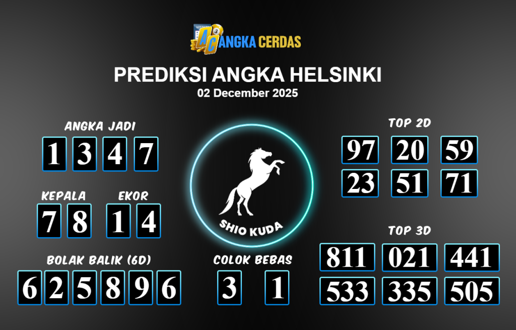 Prediksi Togel HELSINKI untuk hari ini Selasa 02 Desember November 2025, adalah salah