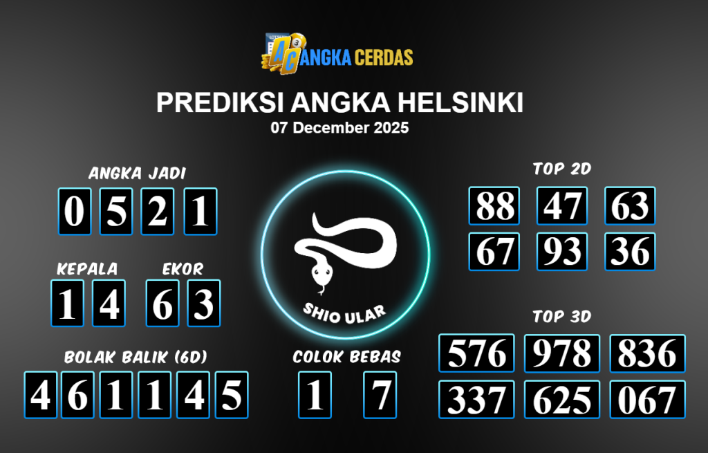 Prediksi Togel HELSINKI untuk hari ini Minggu 07 Desember November 2025, adalah salah