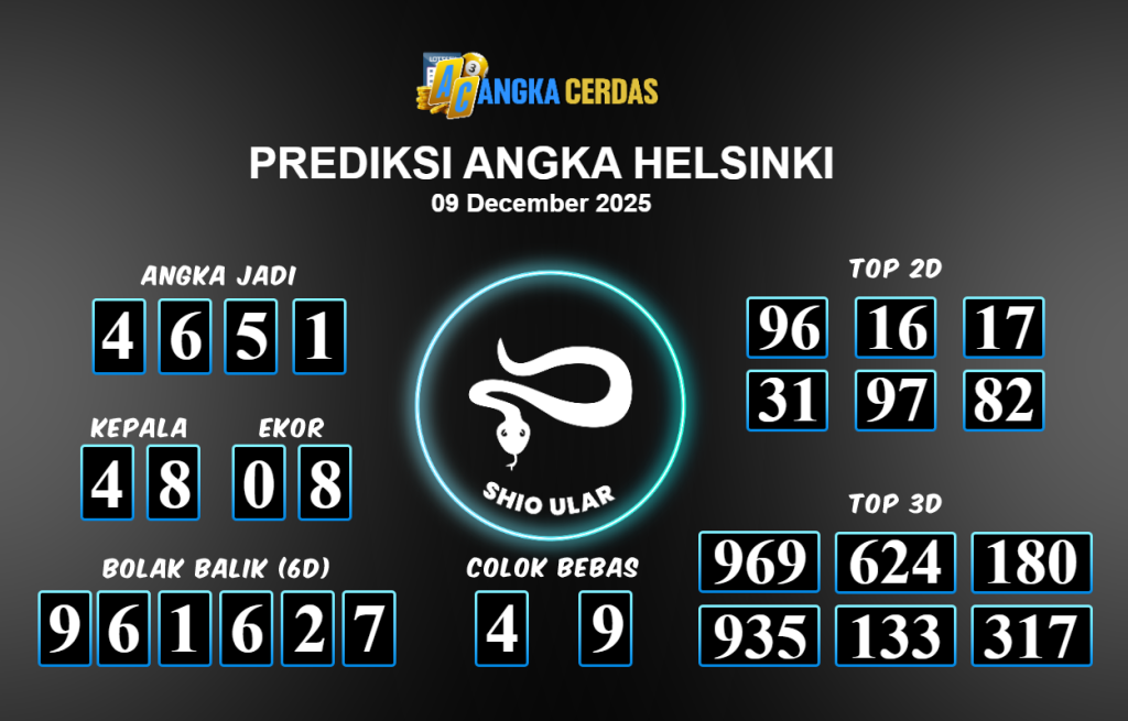 Prediksi Togel HELSINKI untuk hari ini Selasa 09 Desember November 2025, adalah salah