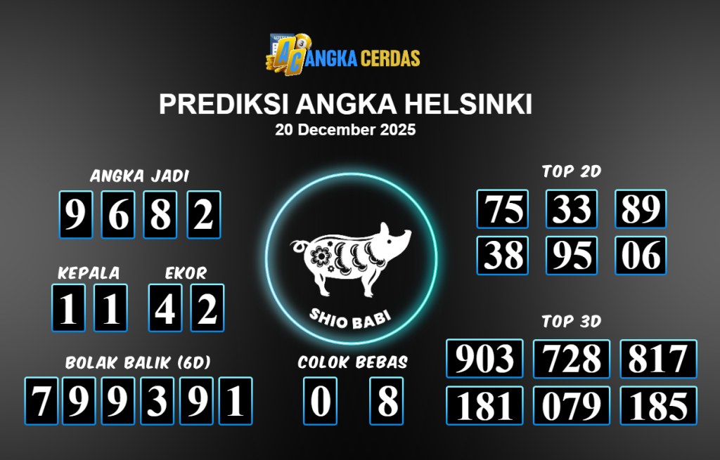 Prediksi Togel HELSINKI untuk hari ini Sabtu 20 Desember November 2025, adalah salah