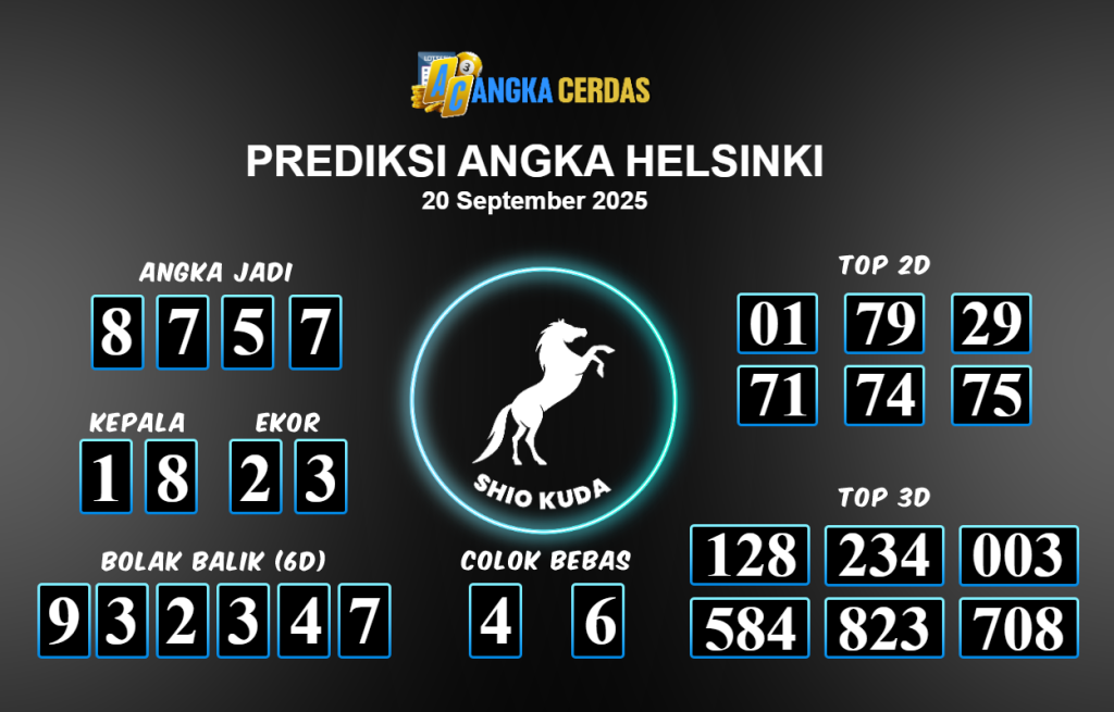 Prediksi Togel HELSINKI untuk hari ini Sabtu 20 September 2025, adalah salah