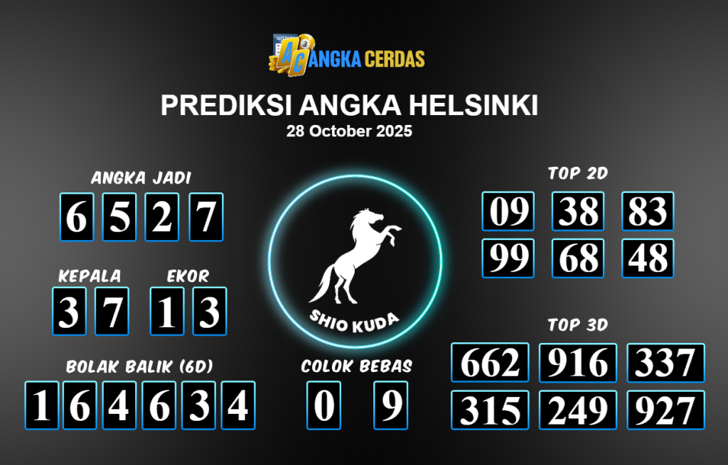 Prediksi Togel HELSINKI untuk hari ini Senin 28 Oktober 2025, adalah salah